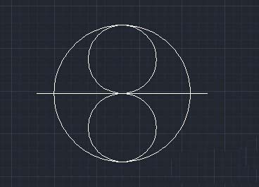 5、執行“圓”命令(c),根據命令行提示選擇“二點(2p)”選項。在“指定圓直徑的第一個端點:”提示下,捕捉水平線段的中點作為起點;在“指定圓直徑的第二個端點:”提示下,捕捉圓的上側象限點作為第二點,從而繪制一個小圓。