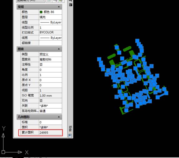 4、關鍵的一步,關閉其他圖層,至保留填充圖層。框選所有的填充塊,然后CTRL+1!結果出來啦,最下邊的累計面積,就是我們要的總的綠地面積。