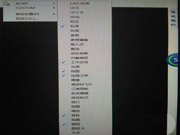2、找開CAD軟件,在畫圖區域的上方,有灰色的部分,在灰色的地方右擊鼠標會出現一個文件窗口,第一個是ACAD,然后會在ACAD的子菜單里看到有繪圖,標注和修改的項目。然后用鼠標左鍵點擊一下,面板就會出現在左面的繪圖區域了。