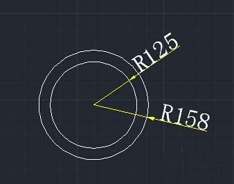 2、執行“圓”命令(c),以交叉點為圓心,繪制二個半徑分別為125mm和158mm的同心圓。