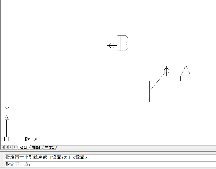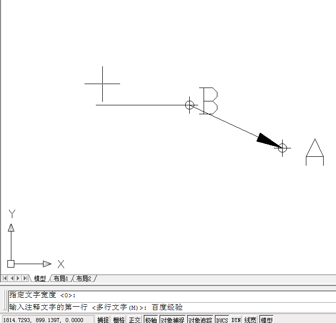 5、指定下一點(diǎn):(選取圖中B點(diǎn))指定下一點(diǎn)或[注釋(A)/格式(F)/放棄(U)]<注釋>:A(輸入A或直接按Enter鍵)