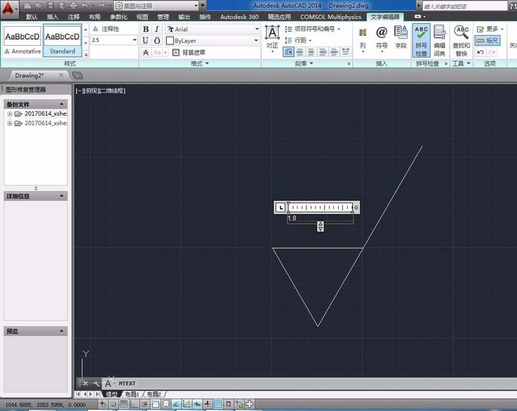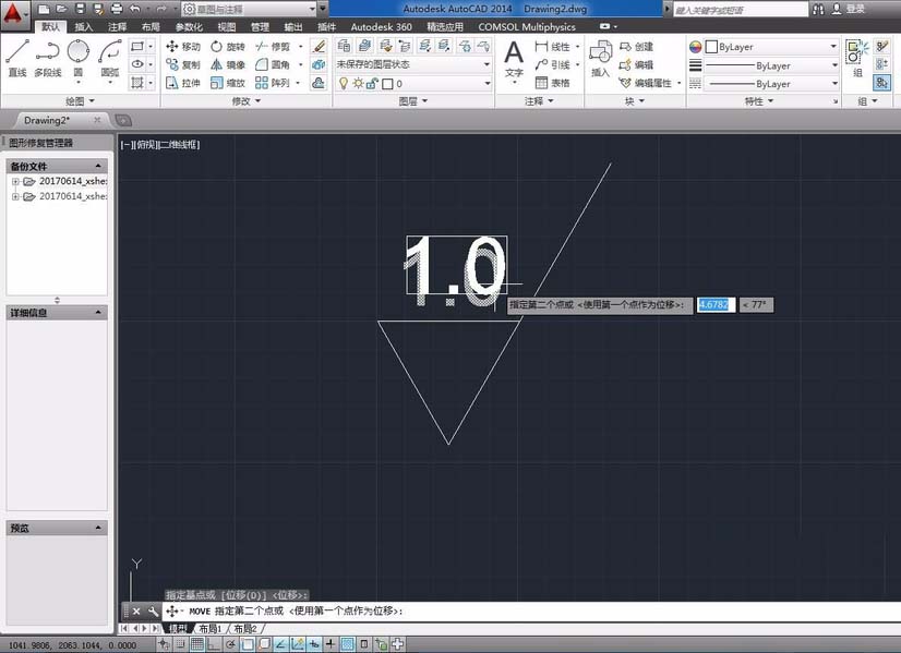 6、文字大小可以通過(guò)改變文字高度來(lái)改變。選中文字,在文字高度設(shè)置框里輸入20.文字高度由原來(lái)的2.5變成20。