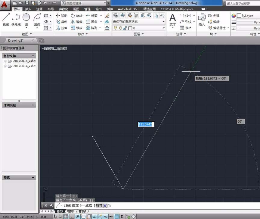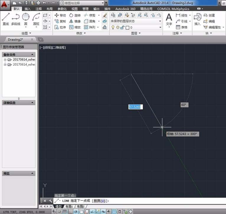 3、開(kāi)始繪制,追蹤角度是30的倍數(shù)時(shí)有綠色的線條提醒。先畫(huà)一條邊。
