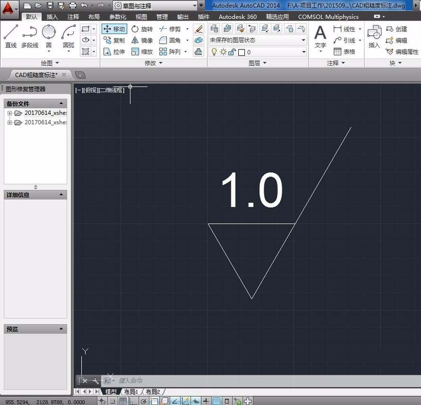 AutoCAD中并不能直接插入粗糙度符號(hào),需要自己繪制,需要注意的是,這里小編只教大家如何使用CAD繪制符號(hào),表面粗糙度符號(hào)的尺寸和文字大小是有國(guó)家標(biāo)準(zhǔn)的,請(qǐng)參考GB/T131-1993給出了詳細(xì)的信息。