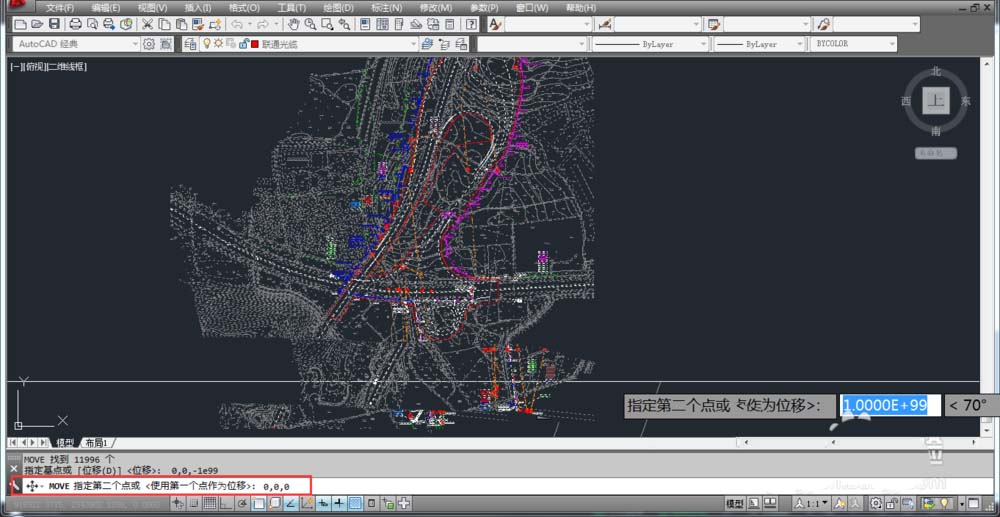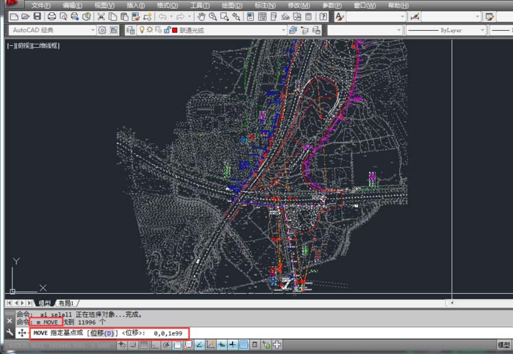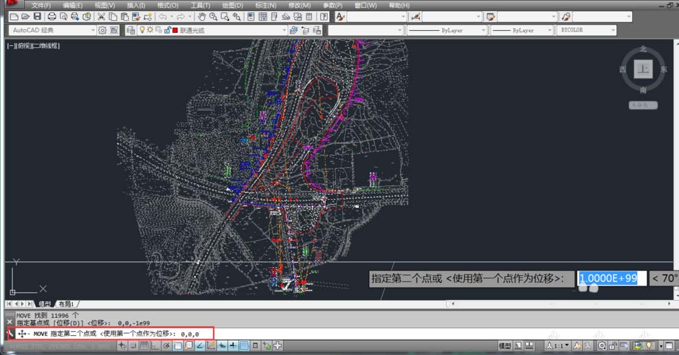 7、按鍵盤上的“ctrl+a”將畫面全選。在命令行輸入“M”,按鍵盤上的“空格鍵盤”或者“Enter”。再次輸入第一點(diǎn)位置 0,0,1e99 按鍵盤上的“空格鍵盤”或者“Enter”確定,然后輸入第二點(diǎn)位置 0,0,-1e99 按鍵盤上的“空格鍵盤”或者“Enter”確定。如下圖: