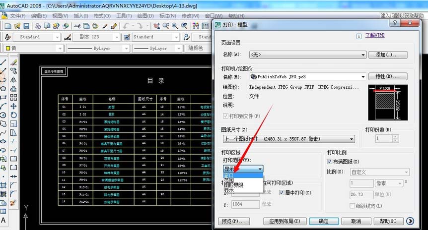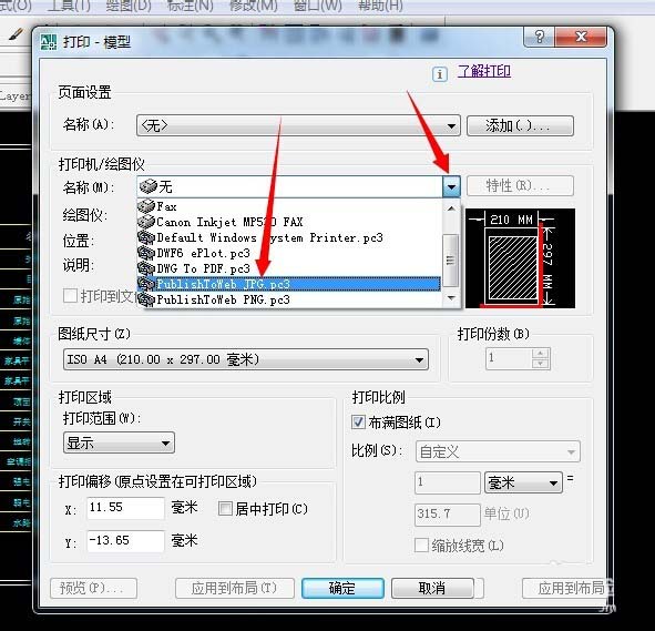 4、這里選擇如下圖三角符號,在選擇publishtoweb jpg.pc3。