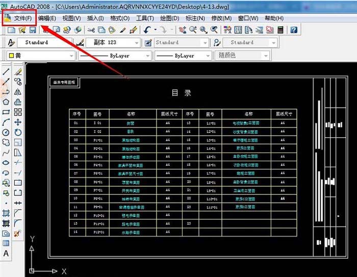 2、首先的開cad軟件,如下圖所顯示,在單擊文件。