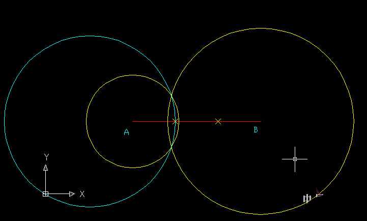 根據(jù)三點(diǎn)確定一個(gè)圓這個(gè)最簡(jiǎn)單的定理,我們只要能找到這個(gè)圓上的三點(diǎn),那么就可以根據(jù)這三點(diǎn)作出這個(gè)軌跡圓(也就是阿氏圓了),假設(shè)這個(gè)比為1:2,那么過(guò)程如下divide命令把AB平分為3份,那么AP/BP=1:2 過(guò)A點(diǎn)做一半徑為X的圓,過(guò)B點(diǎn)做一半徑為2X的圓,X任意,確保兩圓能相交就可以了(黃色的兩個(gè)圓)用三點(diǎn)作圓(一點(diǎn)為靠近A的平分點(diǎn),另外兩點(diǎn)為上面兩個(gè)黃色圓的交點(diǎn)),得到青色的圓就是我們所求的軌跡圓