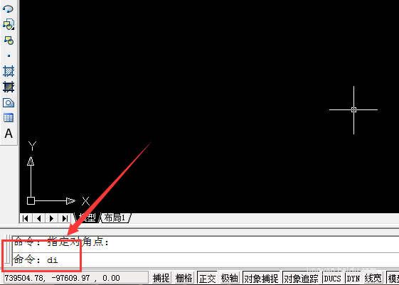 3、我們也可以在CAD的命令欄中輸入“di”字母,通過查詢距離的快捷鍵進行查詢。