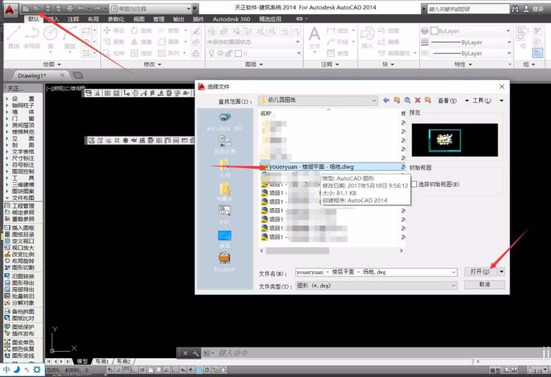 2、使用“Ctrl+O”的開啟命令后,系統會自動彈出文件瀏覽窗口,我們選擇需要導出PS格式的CAD文件,直接雙擊,或者選中后點擊“打開”命令,都可以開啟文件。