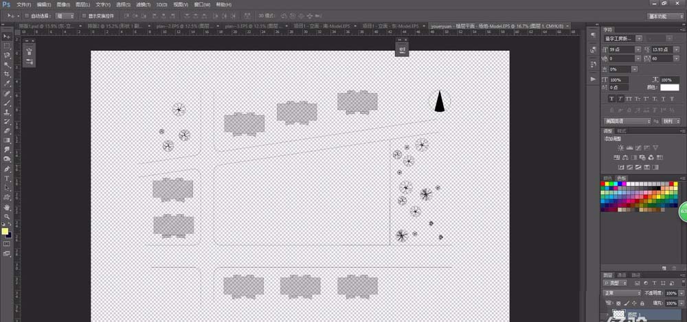 9、完成保存之后,我們即可使用PS打開相應的文件,可以看到使用AutoCad導出的EPS格式圖紙文件,只會保留圖紙的線條,并沒有背景,因此十分適合與其他背景或者圖片結合進行設計。