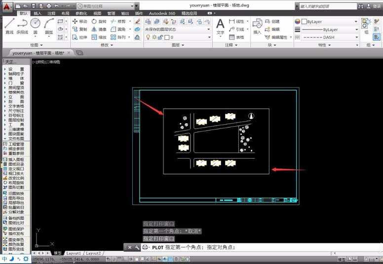 7、確定打印范圍為窗口后,AutoCad系統會自動回到繪圖頁面,我們需要使用鼠標繪制一個矩形框,作為AutoCad的打印區域,這樣就可以進行特定范圍的導出和打印。