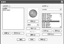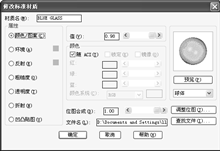 4、在“當(dāng)前庫”中,小編選擇BLUE GLASS材質(zhì),然后選擇“輸入”,完成材質(zhì)的添加,預(yù)覽效果后確定,返回【材質(zhì)】對話框: