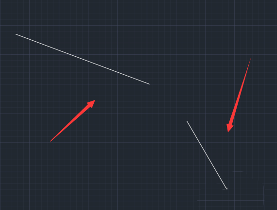 3、點(diǎn)擊直線命令在工作區(qū)繪制兩條線段,如圖所示: