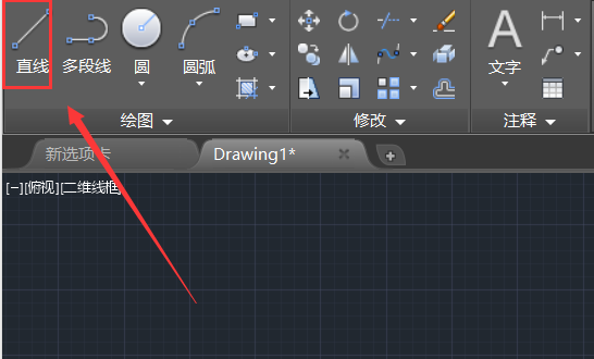 2、在該界面內(nèi)的工具區(qū)找到直線命令,如圖所示: