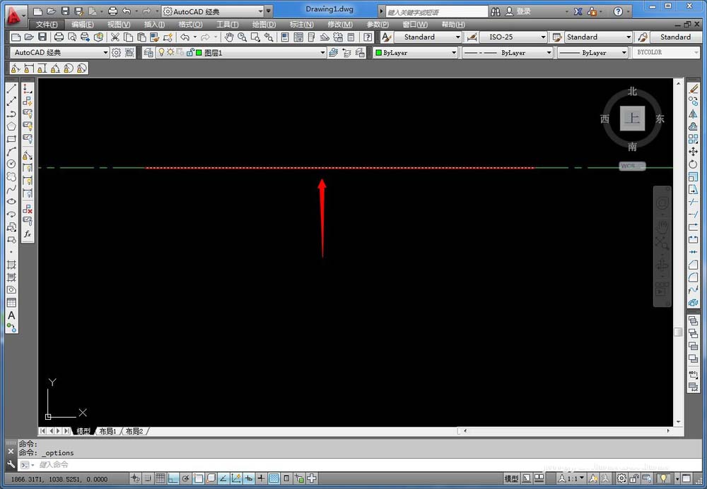 在AutoCAD中,選擇被其他圖元所覆蓋的圖元稍顯麻煩,如下圖所示,紅色的直線被綠色的直線所覆蓋,要高效的選中紅色直線可以參照下面的方法。