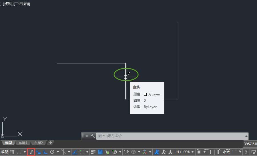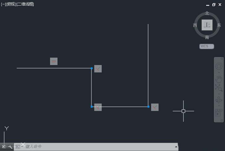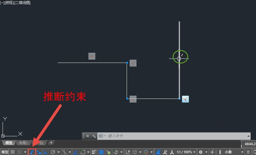 3、如果約束只是被隱藏,即使推斷約束被關閉,當光標移動到有約束的圖形上時,十字光標仍會顯示約束標記,如下圖所示。