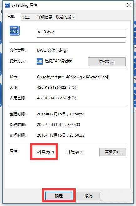 1、如果CAD圖形文件有寫保護的可以選擇“屬性”項以打開文件屬性窗口。