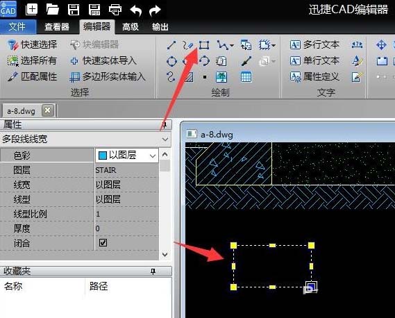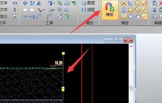 5、在如果想對CAD圖形文件中的內容進行編輯操作,只需要切換到“編輯器”選項卡,開啟“捕捉”功能,并選中相應的圖形對象。