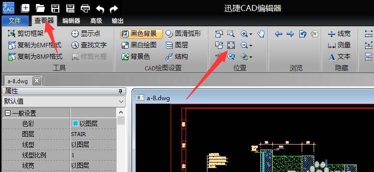 4、在使用任意一款CAD編輯器打開想要進行編輯的CAD圖紙文件,即可在“查看器”選項卡,利用相關縮放工具進行查看。