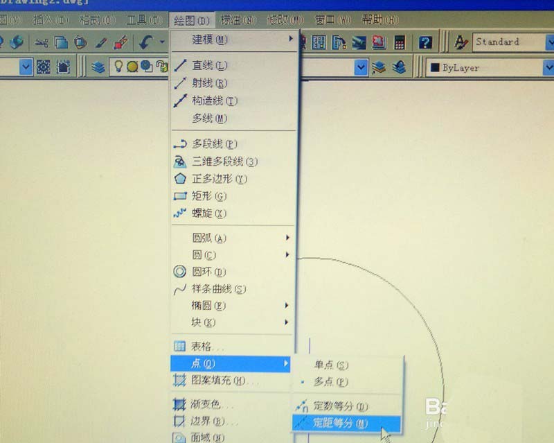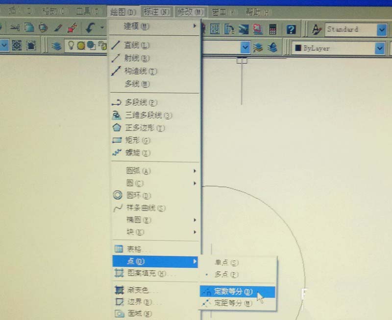 點擊主菜單繪圖→點→定數等分(如下圖1);接著選擇圓,然后要輸入等分的數字,輸入6,確認(按回車即可)得到如下圖2.
