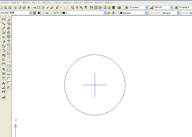 首先打開AutoCAD軟件界面。接著畫一個圓,標出圓心。