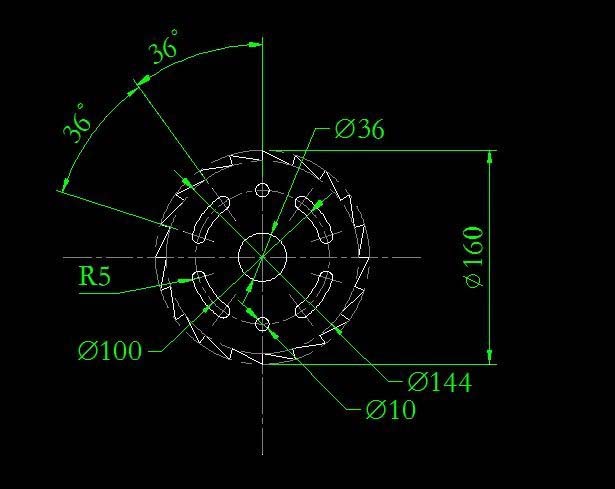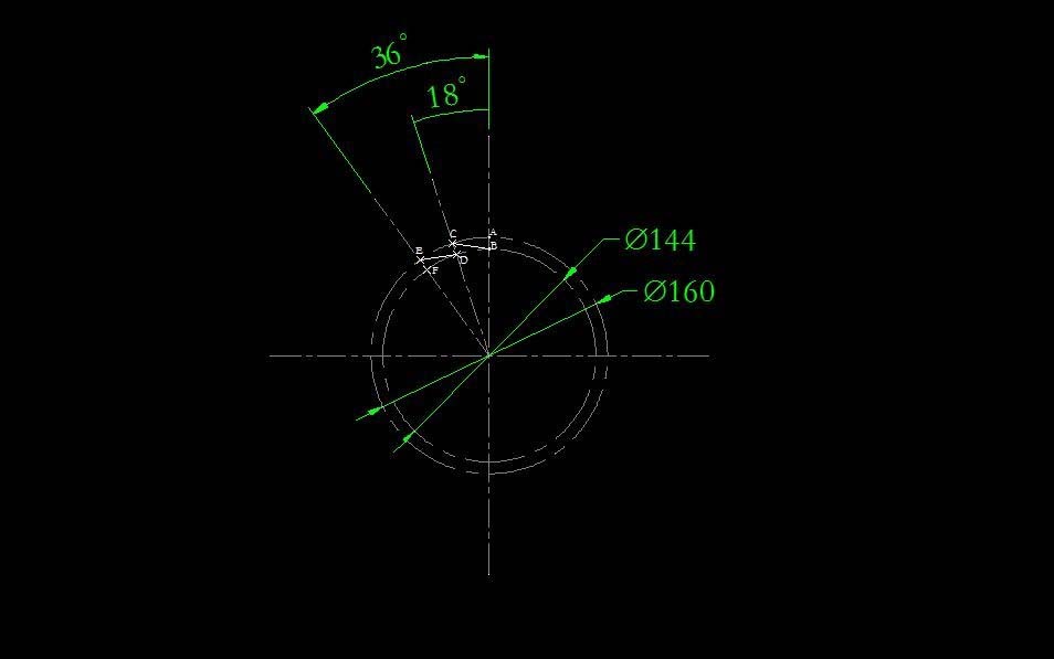 2)以中心線的交點為圓心繪制直徑160和直徑144的圓(這兩個圓是做輔助用的)