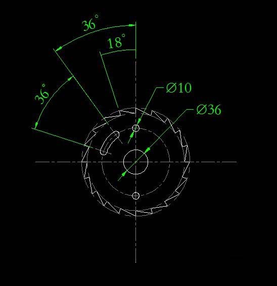8)以十字中心線的交點為圓心,繪制一個直徑為36的圓
