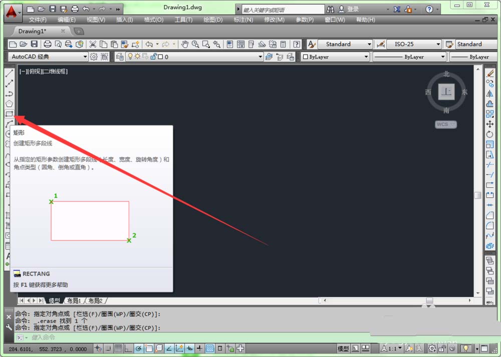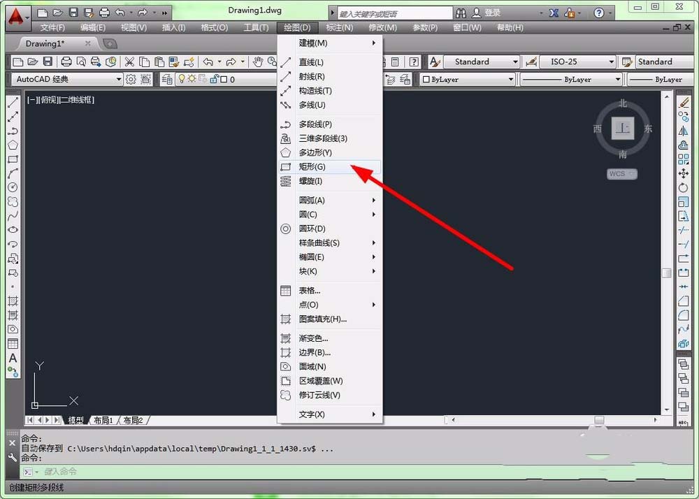 2、點擊繪圖工具欄的矩形命令按鈕。