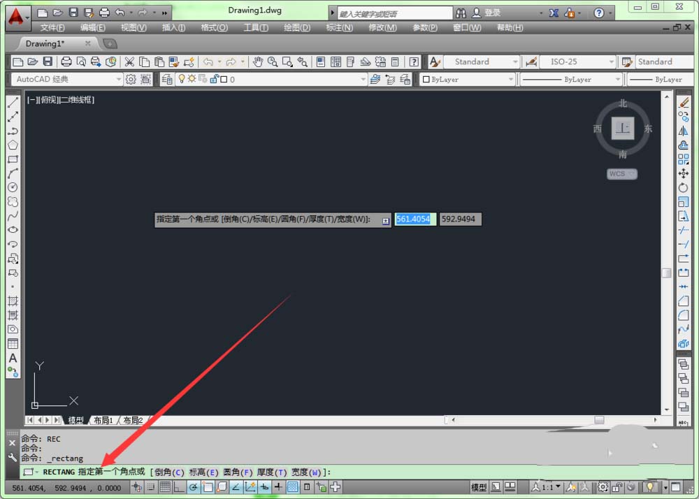 輸入矩形命令后,命令行會有提示信息“指定第一角點或倒角(C)/標高(E)/圓角(F)/厚度(T)/寬度(W)”可按提示操作。先確定矩形的第一個角點,再輸入另一個角點。