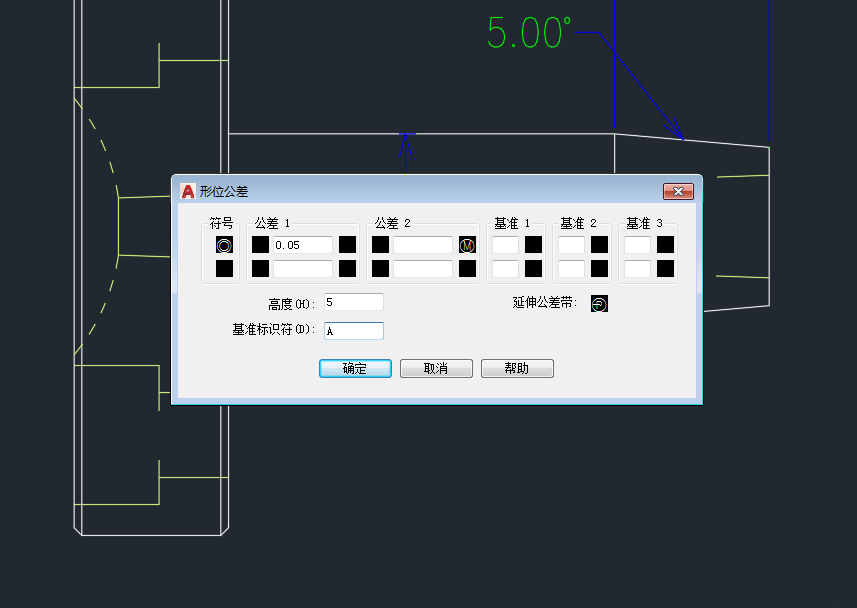 6、設置完成后,點確認,剛輸入的CAD形位公差就如圖所示;