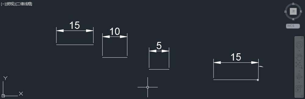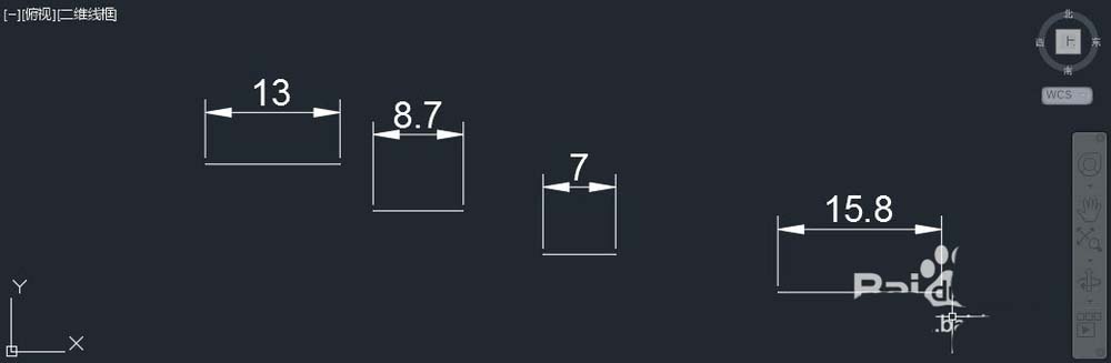 1、開一張空?qǐng)D,繪制幾條直線,長度可以是13、8.7、7、15.8等隨意的數(shù)值,然后輸入DLI,用默認(rèn)的標(biāo)注樣式在給這些直線標(biāo)注上尺寸, 如圖所示。