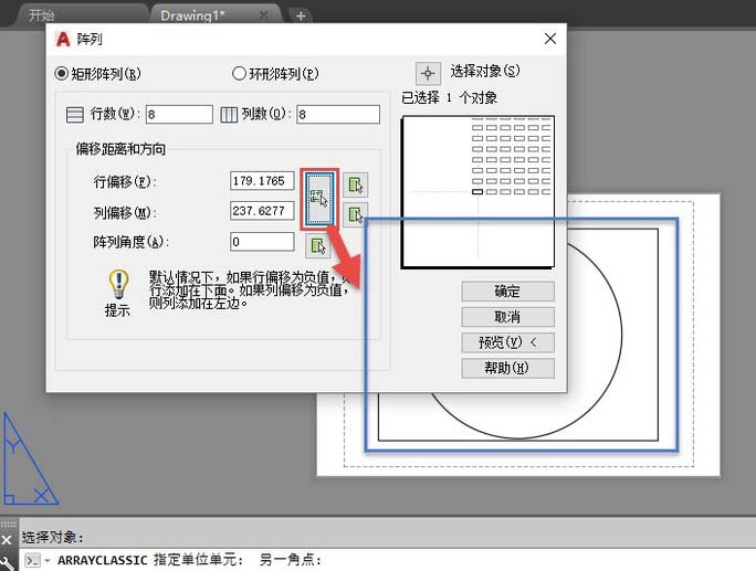 4、單擊行偏移和列偏移后面的大按鈕,在圖中拾取一個比視口稍大的方框,如圖所示。