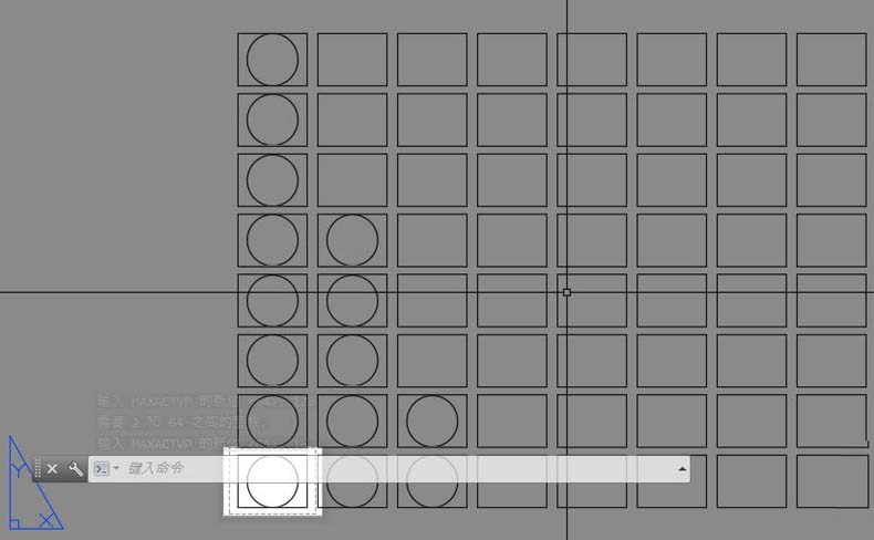 5、單擊確定按鈕,陣列生成64個視口。雙擊鼠標中鍵,顯示所有視口,我們看看視口顯示的效果。我們可以看到右上角的視口顯示空白了,從此我們也知道CAD中最多可以顯示63個視口。如果我們的布局中有視口顯示空白,我們就需要檢查一下我們的視口是不是太多了。有時看到某些圖紙的布局中視口并沒有那么多,但仍有視口沒有顯示,原因通常是類似的,只是人為修改了激活視口數量的限制。