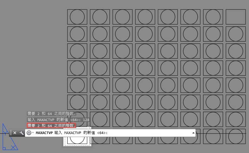 因此視口增多,無論如何都會增加數據量,影響CAD的操作性能,所以CAD對于同時可顯示的視口是有限制的,這個限制就是最大激活視口數量,而且這個數量是我們可以設置的:MAXACTVP。下面我們就通過一個簡單的實例來看一下如何視口數量超出限制后是什么效果,并且看一下如何設置這個限制數量。何設置這個限制數量。