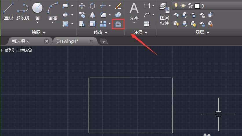 4、選擇剛剛繪制的矩形在上面的修改區(qū)里找到偏移命令,如圖所示: