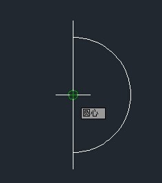 7、將光標水平向右移動到圓弧的右側象限點上,然后單擊鼠標指定線段的第一個點。