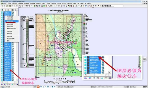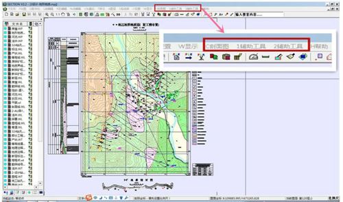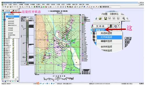 3、用section軟件打開你需要轉(zhuǎn)換的圖(section打開的圖界面和Mapgis一樣,只是菜單欄會多3個菜單,用section打開的圖移動、縮放和cad操作一樣,非常方便)
