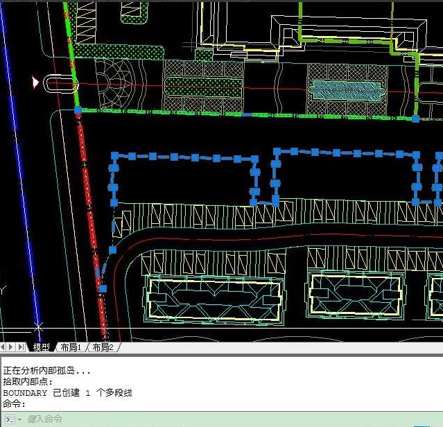 4、按照命令行提示,拾取內部點,鼠標左鍵單擊要生成閉合多段線的內部區(qū)域。