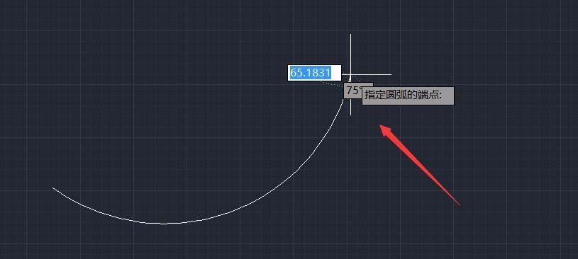 6、在第二個點的為點擊鼠標左鍵,就得到了一段圓弧,如圖所示: