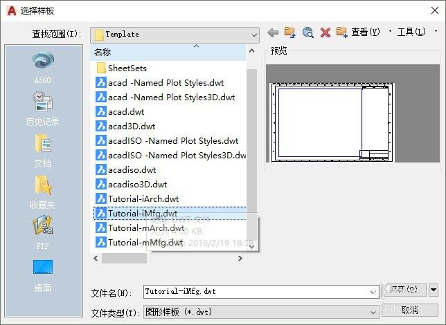 在新建文件時,低版本會讓我們選擇英制或公制,到高版本會直接讓我們選擇一個樣板文件,其實兩種差不多,以前讓選擇的英制對應的樣板文件是acad.dwt,公制對應的acadiso.dwt。AUTOCAD還提供了一些其他的樣板文件,有些樣板文件甚至還帶圖框,如圖所示。