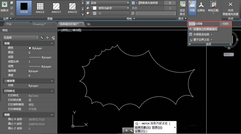 輸入FILL,回車(chē),命令行會(huì)提示輸入模式為ON或OFF