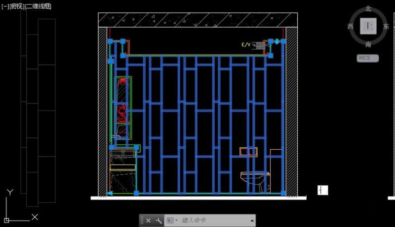4、這個圖塊還不是普通的圖塊,繪圖者為何適應不同區域的大小,并沒有簡單地將單元陣列幾個,做成一個固定的圖塊,而是將一個單元圖塊后,設置了一個陣列的動作,如果墻面較寬,拉動夾點就可以多個單元,如果墻面較窄,就可以少幾個單元。