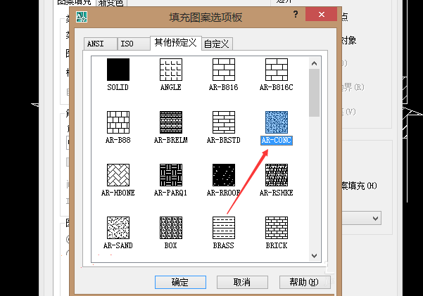 5、之后再打開“填充圖案選項版”,然后選擇里面的AR—CONC圖形。