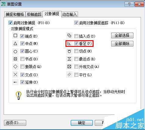 1、設置“對象捕捉”,鼠標放在下方“對象捕捉”上右擊---"設置"---勾選"垂足"