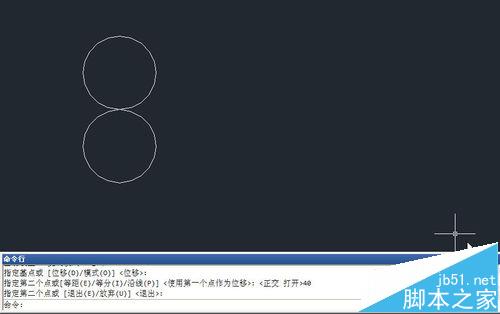 2、輸入CO,回車,選擇圓,捕捉圓心作為基點(diǎn),按F8打開(kāi)正交,向上拖動(dòng)光標(biāo),輸入40,回車,只在上方復(fù)制一個(gè)圓,如下圖所示。