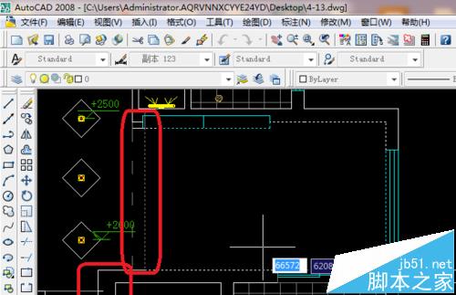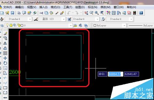 3、用多段線來進行來如下圖,這里青色表示石膏板,紅色表示燈帶。