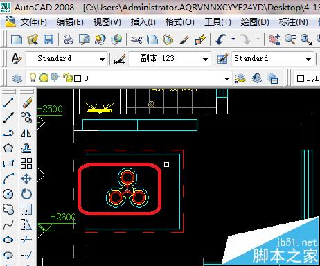 4、在從cad圖庫里燈復制到這里,CAD圖庫網上很多,我前幾篇也有。這燈放在很豪華,看起來比較高檔。