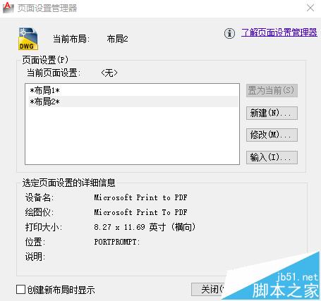 2、這里如果這樣操作得到的就是白色背景的彩色wmf,效果并不好。個人通常喜歡黑白的,看起來舒服。那么,需要開始之前,新建布局。右鍵單擊新建的布局選項卡->頁面設置管理器->修改->打印樣式表->monochrome,并且勾選 顯示打印樣式表。這是圖紙就是白色背景的黑白wmf了。