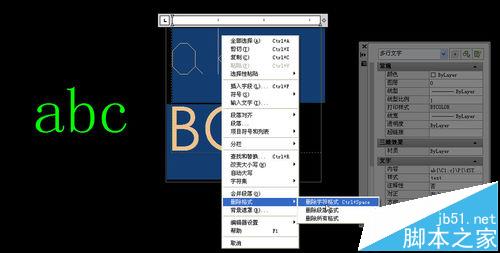 刪除格式里有三個(gè)選項(xiàng),可以選擇只刪除字母或段落格式,也可以全部刪除。刪除字符格式后,原來對(duì)字體、顏色、字高的修改都被刪掉了,多行文字才會(huì)恢復(fù)了它應(yīng)用的樣子,如下圖所示。